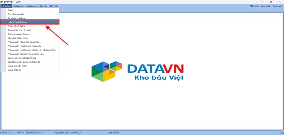 · Vào Hệ thống/Lịch sử người dùng